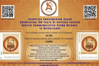 The report stated, “To honour this monumental milestone, Hindu Swayamsevak Sangh Nederland. (HSS NL) proudly launched on World Postal day a special commemorative postal stamp – a symbol of one hundred years of unity, discipline, and devotion to the world’s universal Dharma”. (sic)