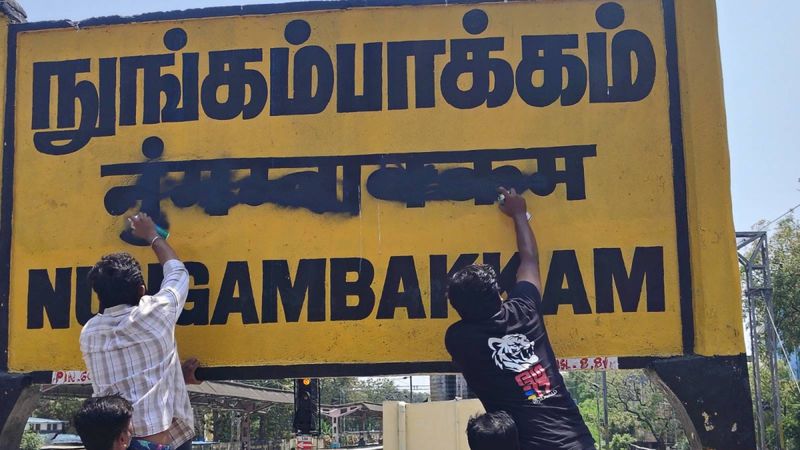 Participants of the 'May 17 Movement', under the leadership of the movement’s organiser Thirumurugan Gandhi, walked into the Chennai Park Railway Station and painted black the recently placed station signage boards, which prioritised Hindi in the centre, with Tamil above and English below. An activist of the movement Siva Dileepan also jumped in front of a train entering the station and shouted, “Long live Tamil, down with Hindi.” He is undergoing treatment.
