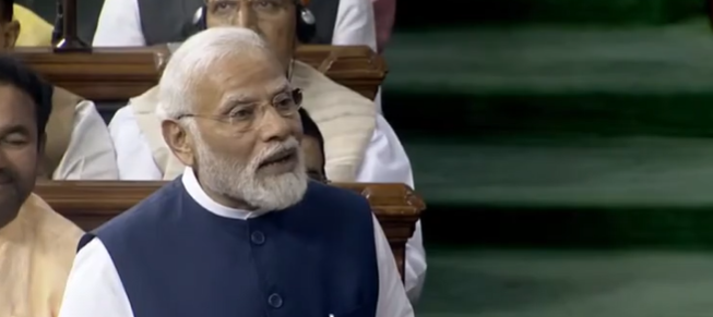 Prime Minister Narendra Modi in Lok Sabha on August 10, 2023.