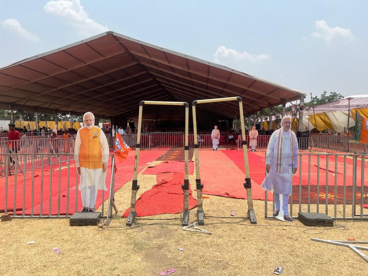Preparations before Adityanath's rally in Gorakhpur on Sunday (May 26). Photo: Seema Chishti
