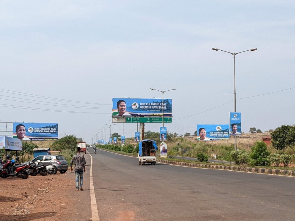 Mamata Banerjee’s face plastered all across Goa airport highway. Photo: Himadri Ghosh.