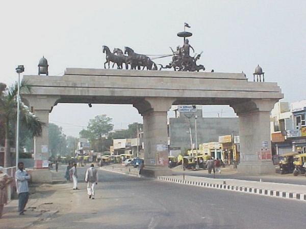 The entrance gate of the city Kurukshetra Haryana with the chariot of Arjun on it. Credit: Twitter