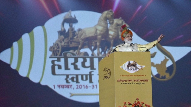 Prime Minister Narendra Modi inaugurates Haryana's year-long jubilee celebrations. Credit: PTI