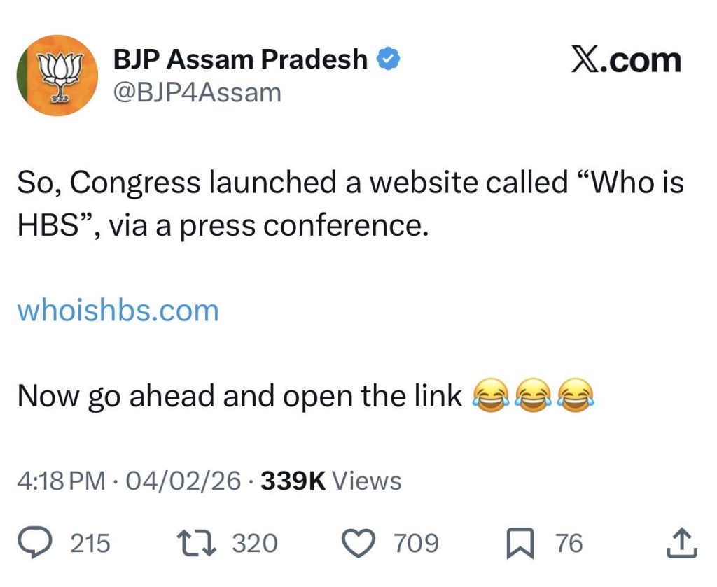 The Congress has launched a website – 'www.whoishbs.com' – listing allegations of Sarma's corruption and land grab details. The BJP's Assam wing X account had initially shared this link in a post, but has now deleted it. The website has a number through which people can call the Congress with complaints.