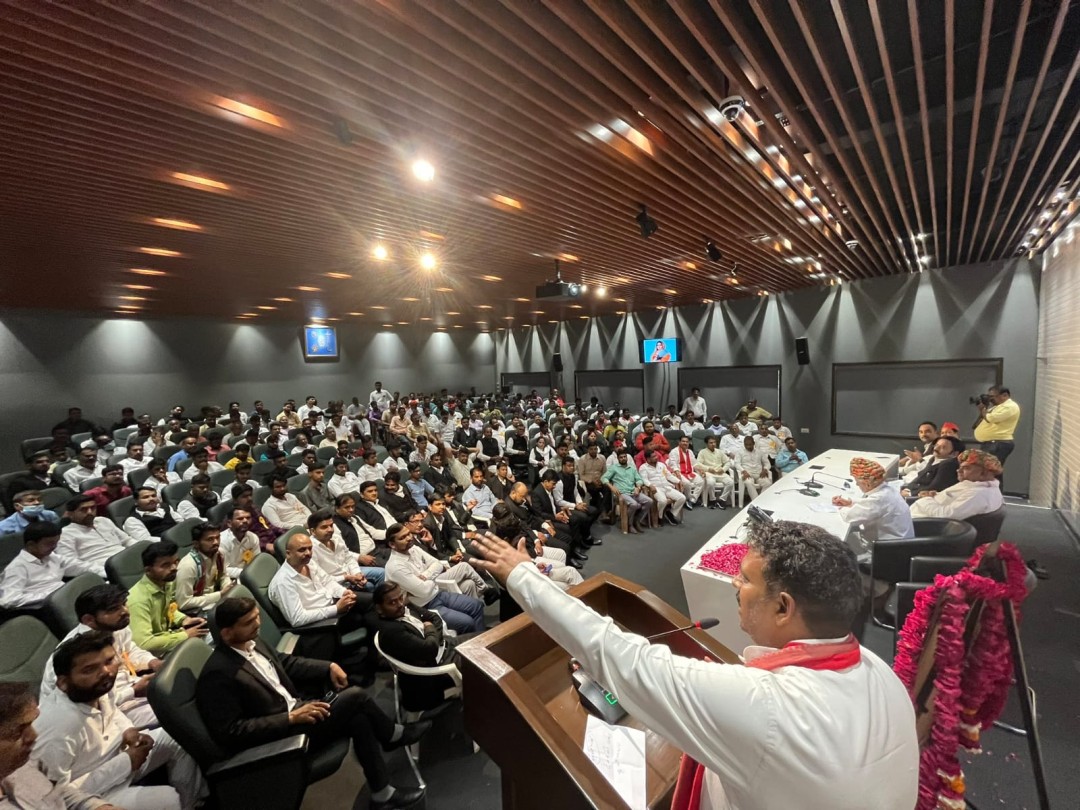 Rajpal Kashyap addressing a gathering in Lucknow. Photo: Twitter/Pal Kashyap