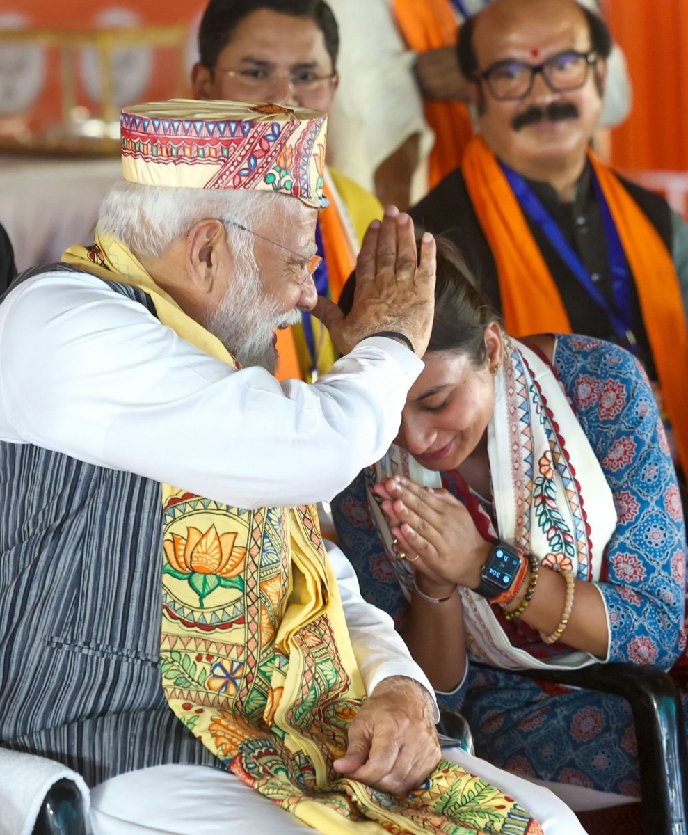 Shambhavi Chaudhary with Prime Minister Narendra Modi at a rally.