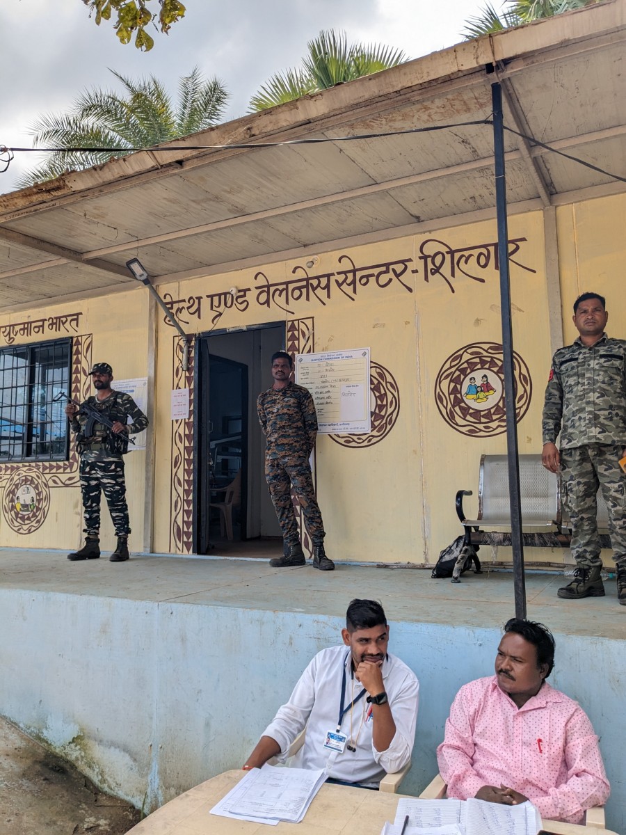A couple of kilometres from the Mokur camp where four tribals were killed by security personnel on May 17, 2021, when they opened fire on a protesting crowd, and just 500 meters from the spot where several tribals sat on a protest for a year after the incident, the polling booth stands tall, albeit protected by over 80 security personnel, spread across a radius of 2 km around the booth.