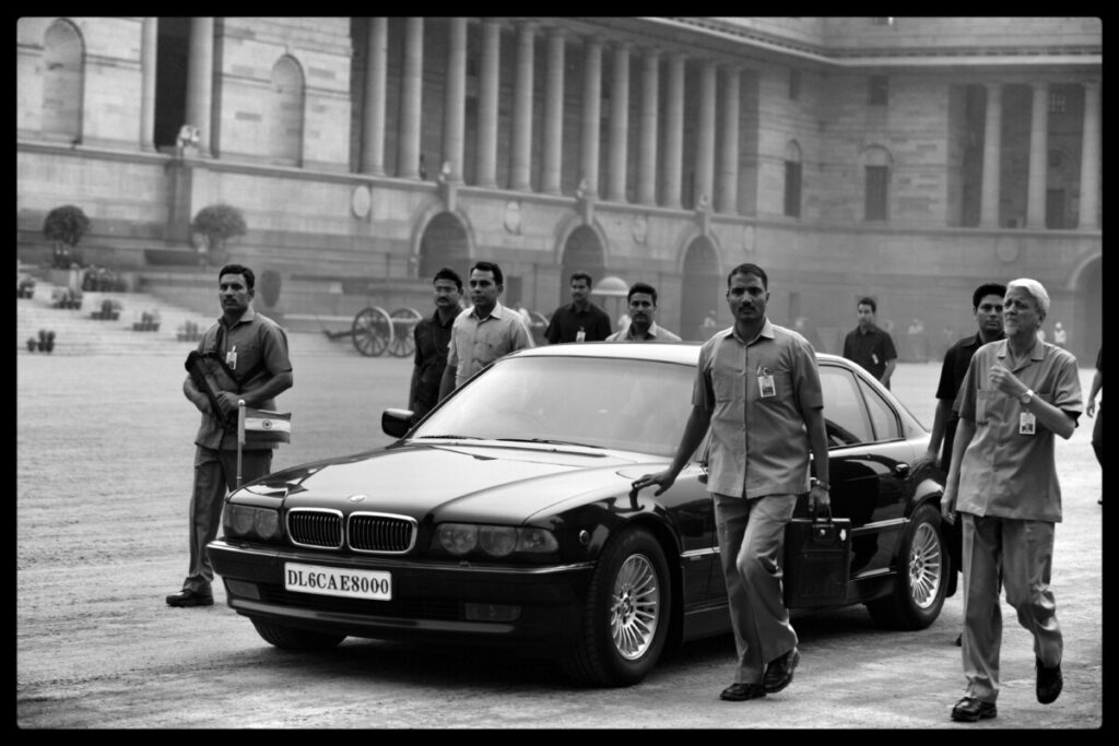 Manmohan Singh on his bullet proof BMW car after taking over again in 2009. Photo: Shome Basu.