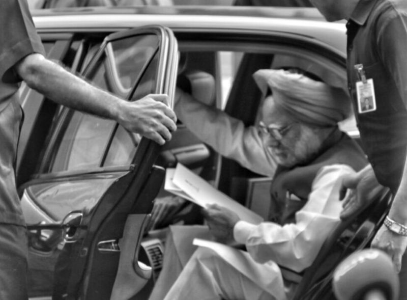 Manmohan Singh arrives at work. Photo: Shome Basu.