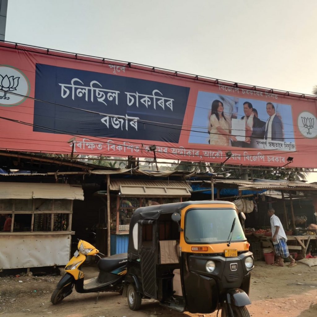 Traversing through the huge expanse of the state from Guwahati to the largest township in upper Assam, Dibrugarh, there may not be as many posters and billboards of various parties and their candidates as they were in 2016 – particularly of the BJP, but they do sum up the story of the 2021 Assam assembly elections.