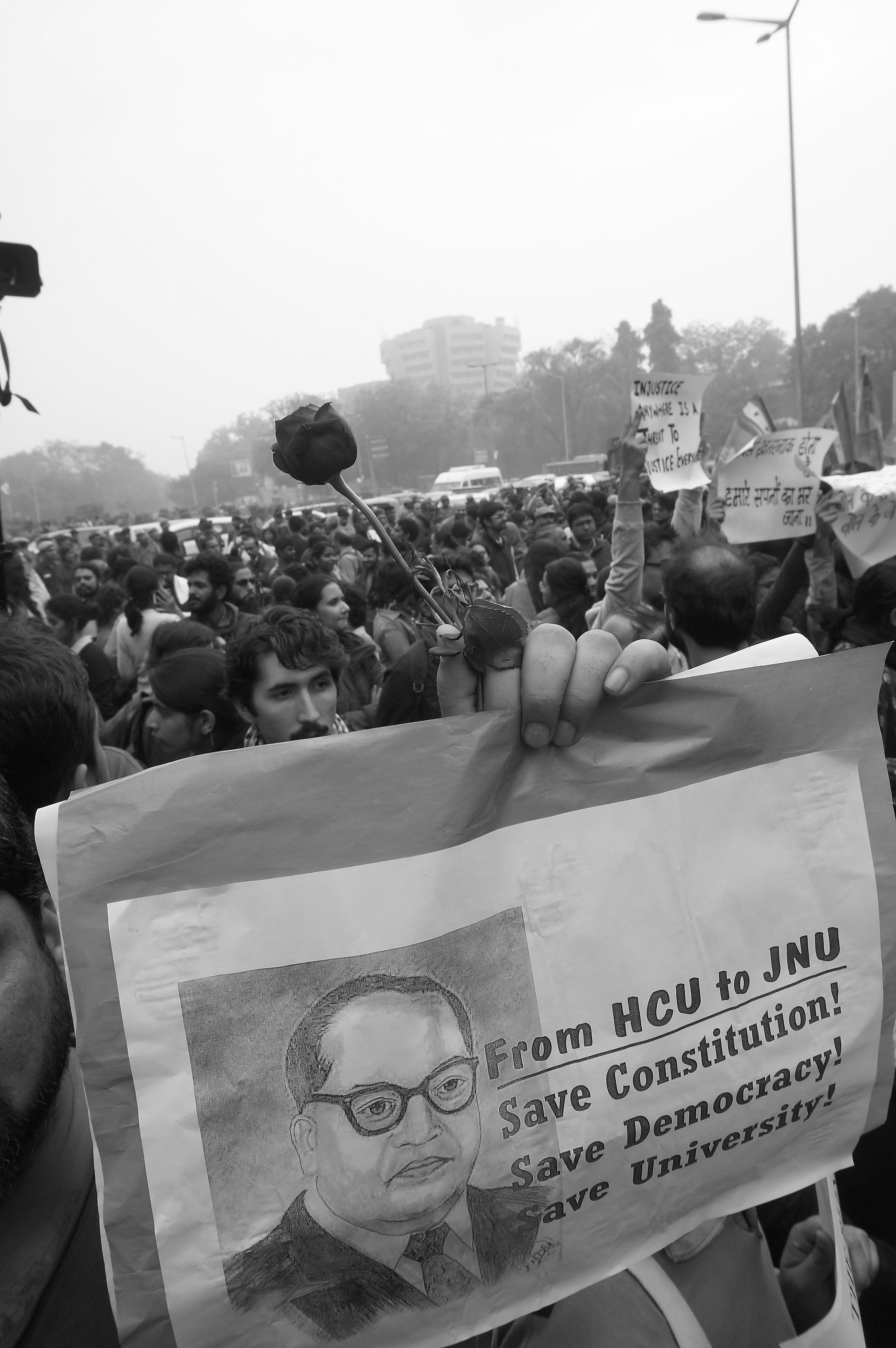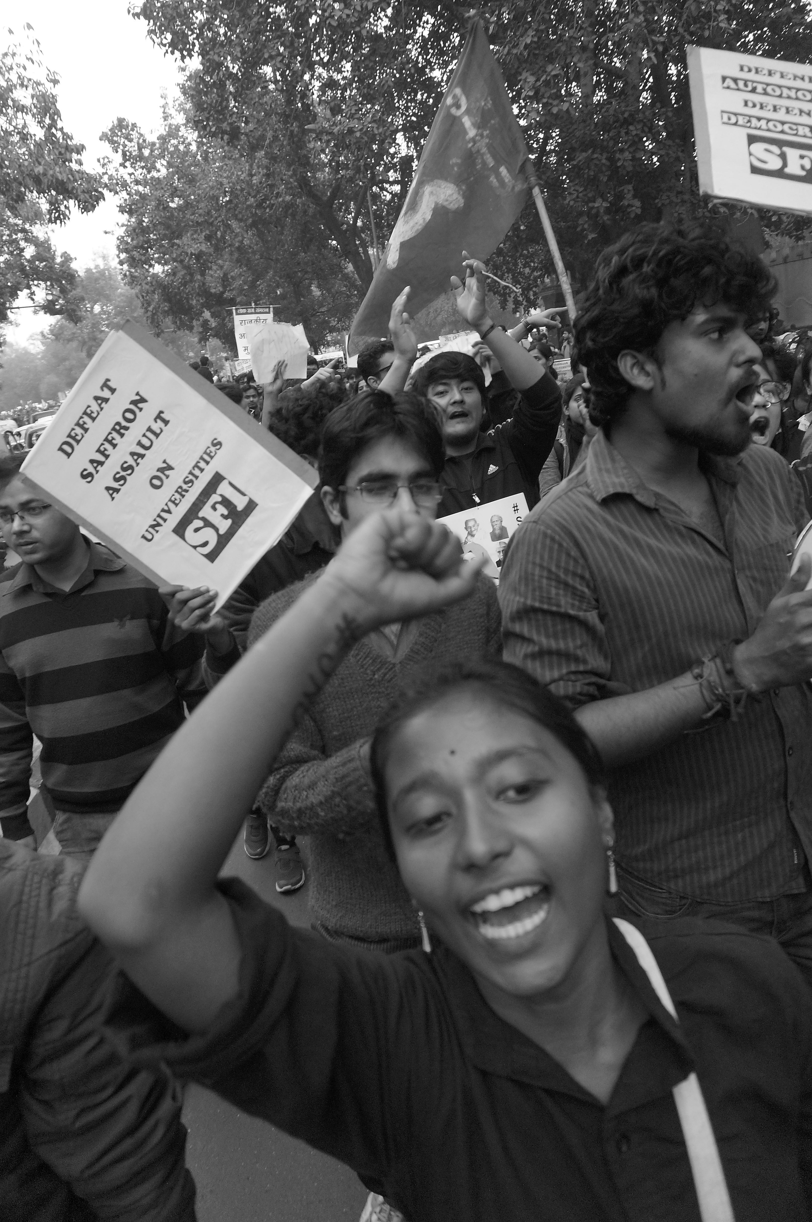 A huge number of them held roses in their hands and raised them in the air in unison at the start of the march and let out a huge defiant cry. Besides students, alumni and faculty of JNU and other universities such as DU, Jamia Milia Islamia and Ambedkar University Delhi, eminent academicians, journalists, theatre and film personalities also participated in the protest.