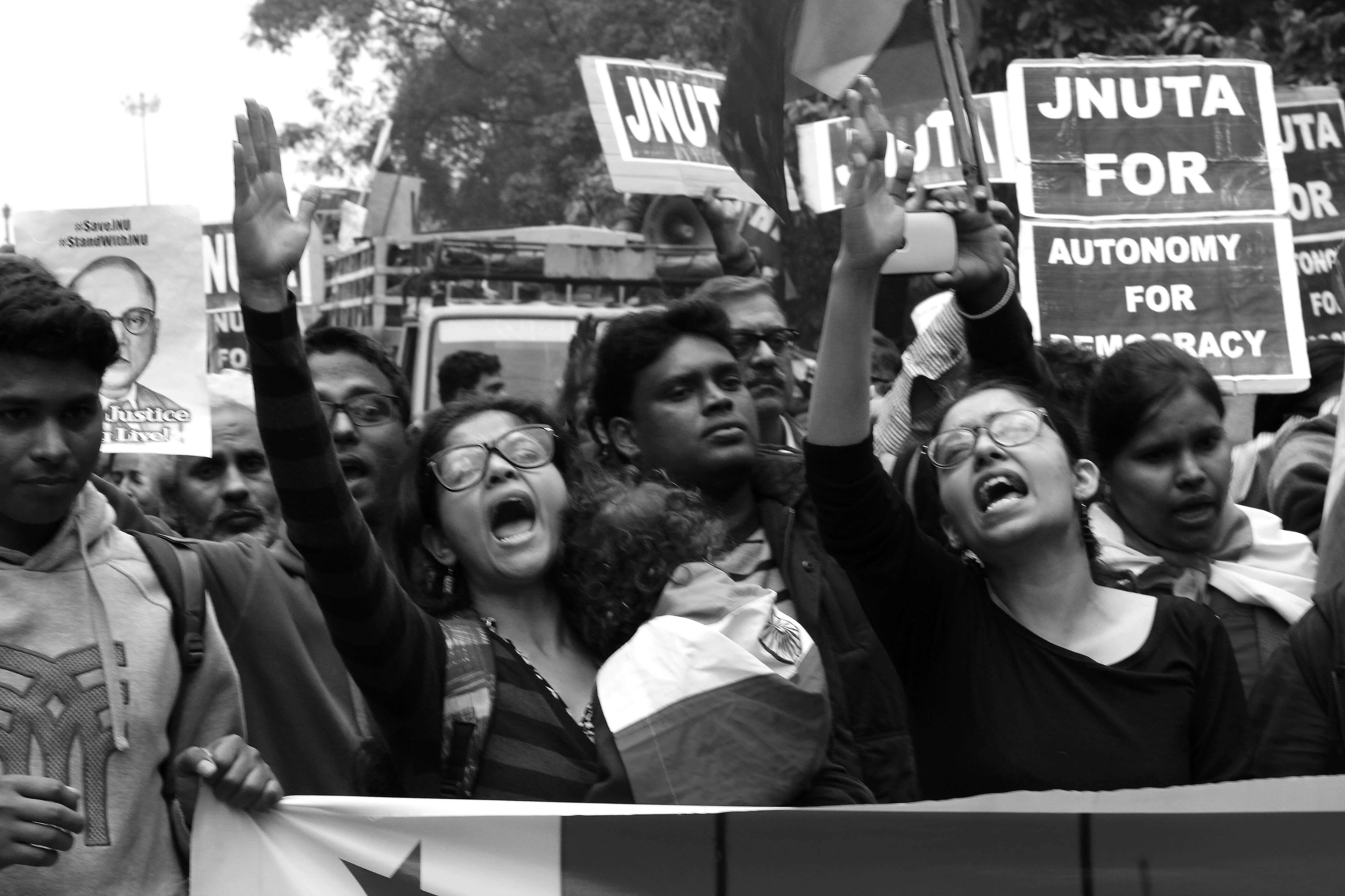 Alleging being subject to "witch-hunting "and "media trial", the refrain among the protesters was that JNU had to be saved from "right-wing forces imposing their ideologies" on a liberal institution.