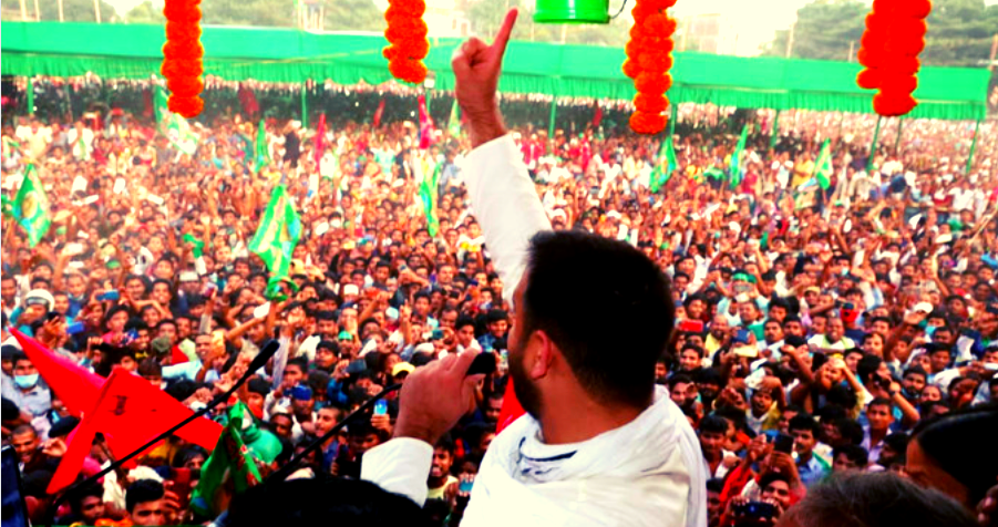 Tejashwi Yadav on the campaign trail. Photo: Twitter/@yadavtejashwi