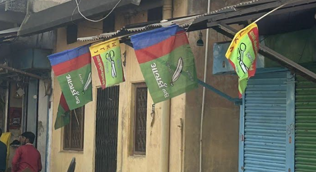 JLKM flags along with AJSU flags in Dumri. Photo: Sravasti Dasgupta/The Wire.