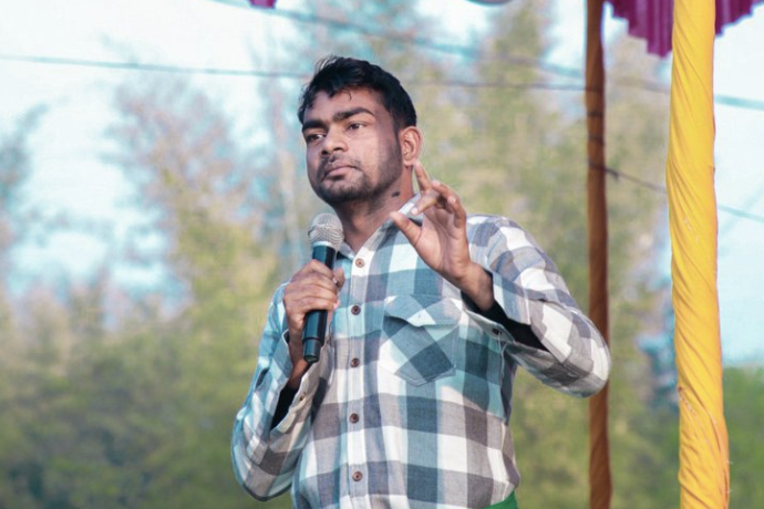 Jairam Mahato addressing a packed rally. Photo: X/@Tigerjairam