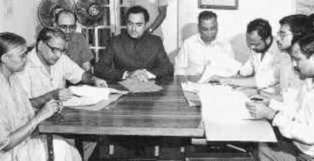 Prafulla Kumar Mahanta and Bhrigu Kumar Phukan are seen in this photo of the Assam Accord signing. Photo: www.inc.in