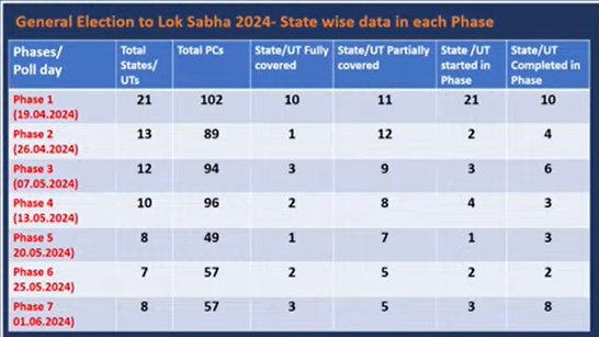 The seven phases will cover a total of 543 constituencies.