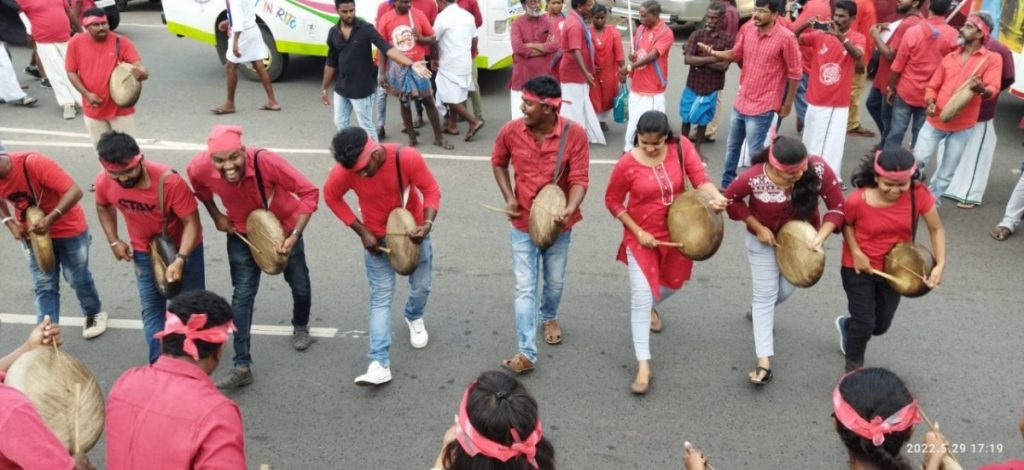 On the morning of May 29, the locality of Pazhanganatham in Madurai, one of the oldest cities in Tamil Nadu, witnessed a spectacular turnout of thousands of people. They had arrived from different places in all manner of vehicles. But there was one thing common to them – all of them were wearing red shirts, which proclaimed their unity of purpose. On one side men and women grouped together and on the other a group of youngsters were warming up to play the parai, or drum.