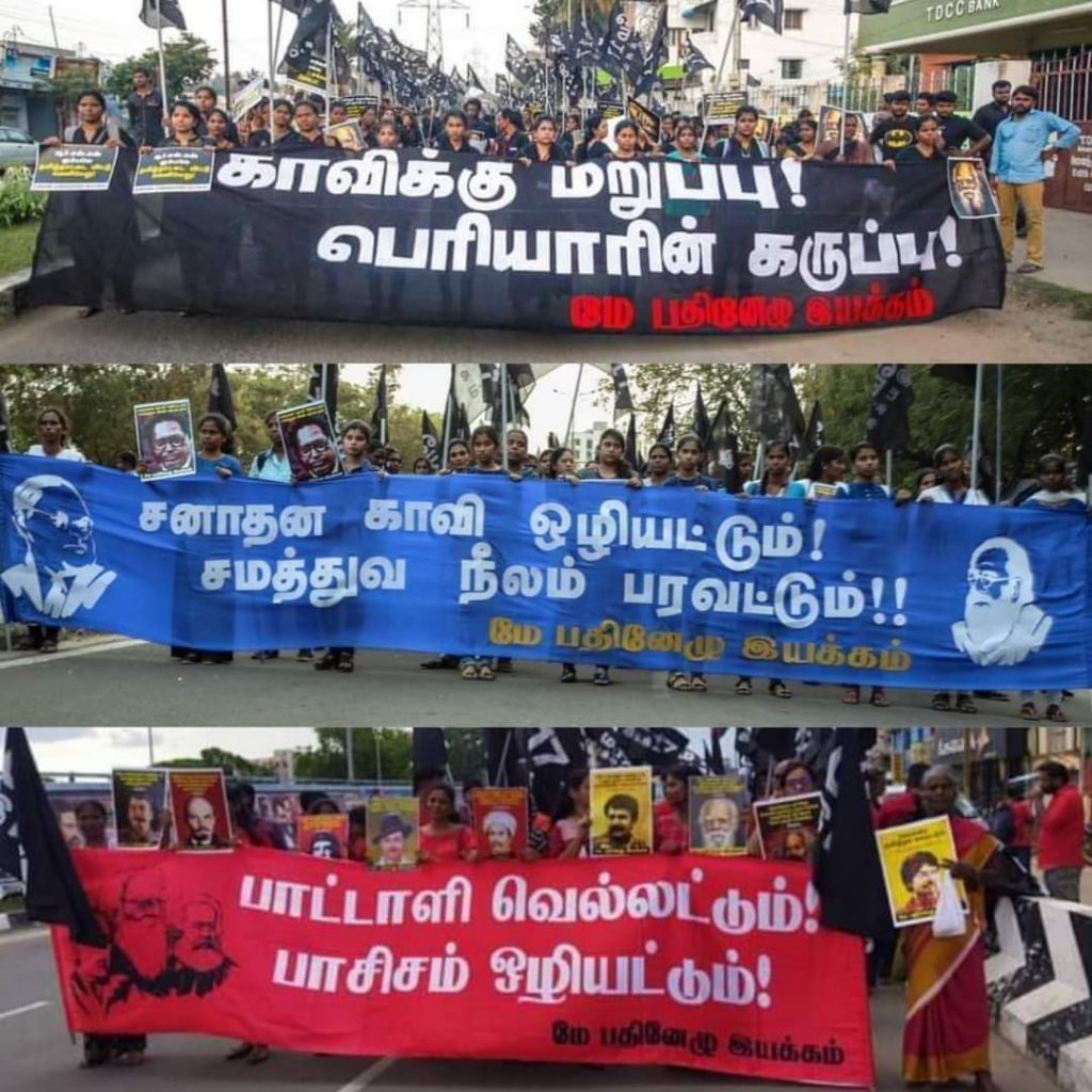 In Tamil Nadu, this political clarity, that opposing Periyar leads directly or indirectly to aligning with Brahminism, has always been there. This clarity is what helped the blue shirt rally at Coimbatore in 2020 to garner massive public support. Though the then AIADMK government, which was in alliance with the BJP, denied permission for the rally, the Kootamaippu put up a legal battle and secured permission.
