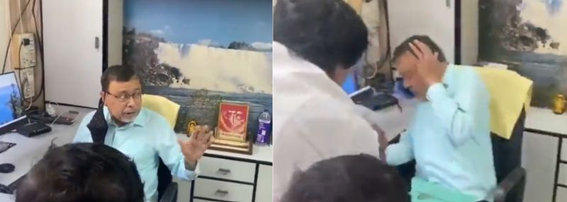 The video showed the BJP leader having an altercation with some men while he was seated on his desk. In the middle of the argument, one of them slapped him.