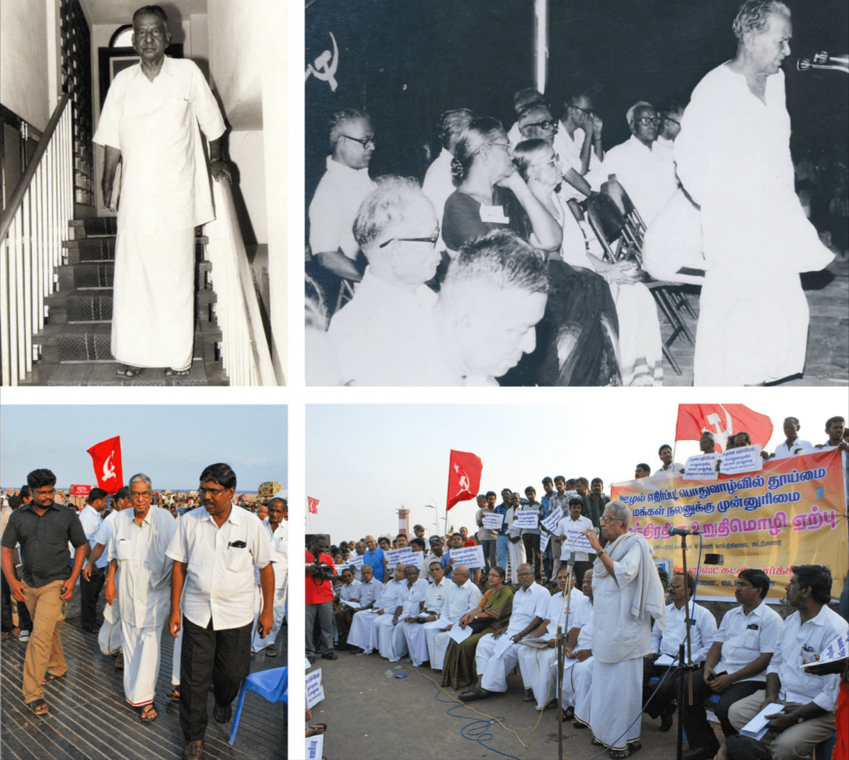 He is proud of the fact that “We were the first to introduce Tamil in the Tamil Nadu assembly. In 1952, there was no provision to speak in Tamil in the assembly, English was the only language, but [our MLAs] Jeevanandam and Ramamurthy spoke in Tamil though the provision for it came only 6 or 7 years later.”