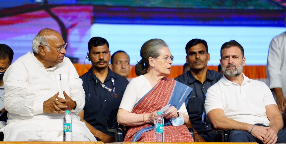 Mallikarjun Kharge, Sonia Gandhi and Rahul Gandhi. Photo: Twitter/@INCIndia