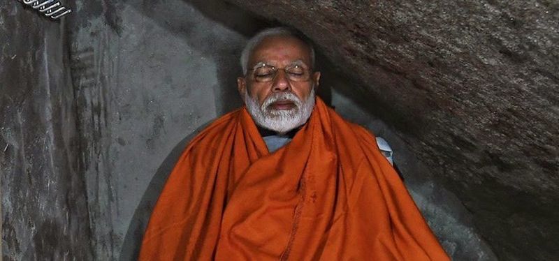File image of PM Narendra Modi meditating in a cave near Kedarnath Temple on May 18, 2019. Photo: PTI