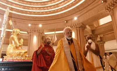 Prime Minister Narendra Modi unveils the Statue of Equality, a 216-foot tall statue of 11th-century saint Ramanujacharya, in Hyderabad. Photo: Twitter/@narendramodi
