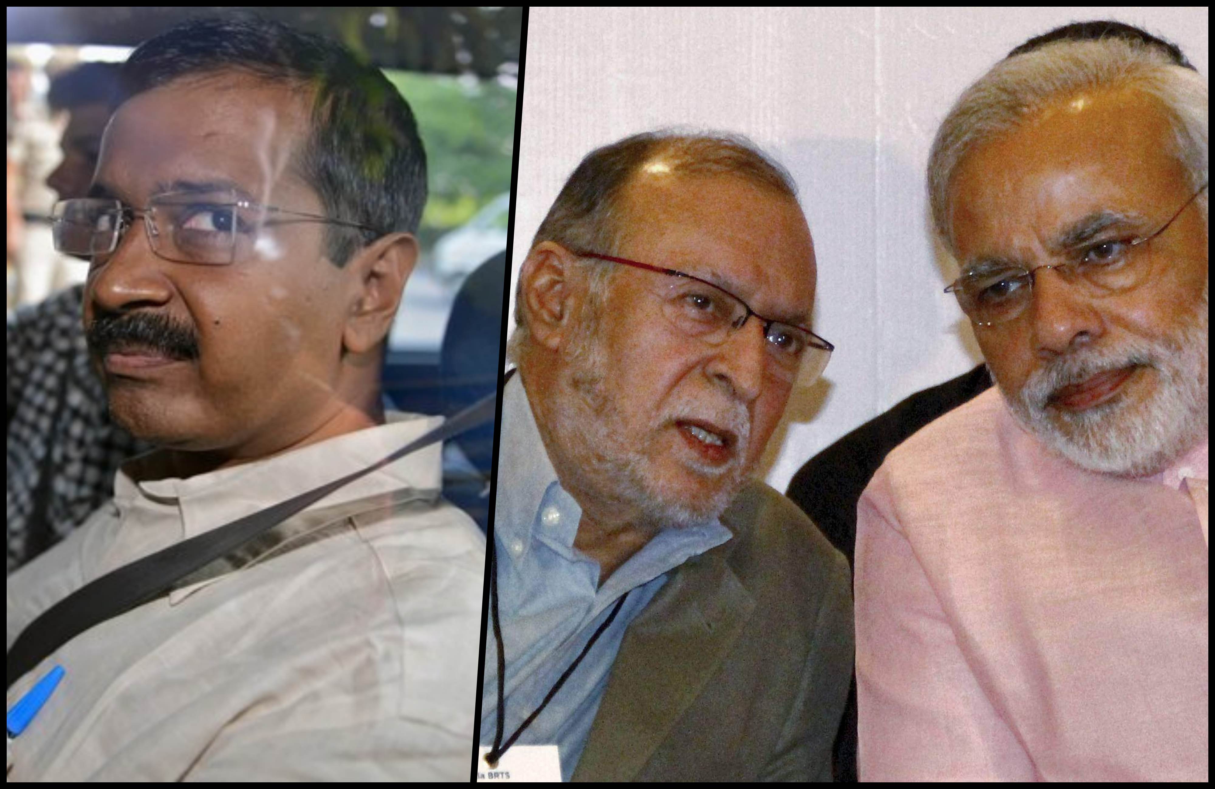 Delhi chief minister Arvind Kejriwal (Reuters), Delhi lieutenant governor Anil Baijal and Prime Minister Narendra Modi (PTI)