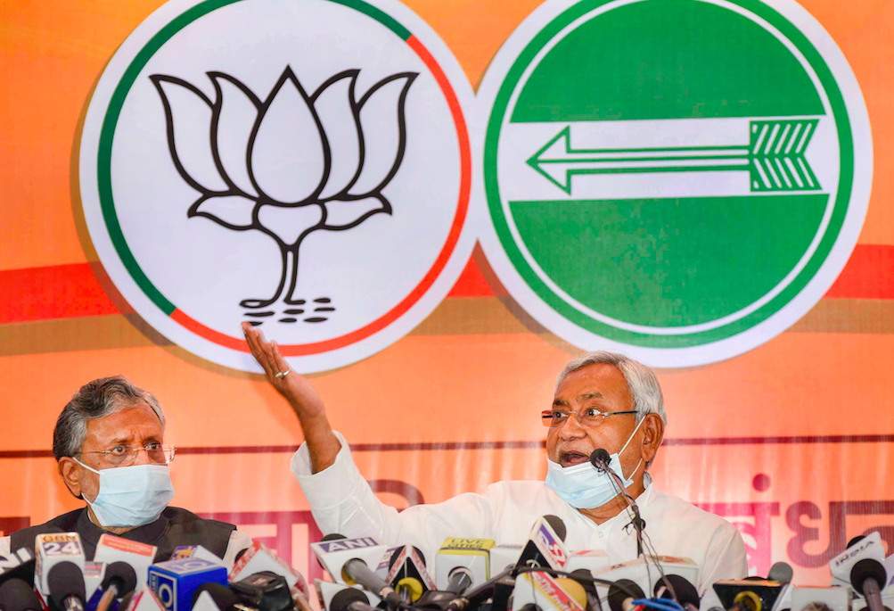 The JD(U) and the BJP jointly announced on Tuesday night that they would contest on 122 and 121 seats each for the 243-member Bihar Assembly respectively. The JD(U) will accommodate the Jitan Ram Manjhi-led Hindustani Awam Morcha (Secular) and the BJP, Mukesh Sahni's Vikassheel Insaan Party.