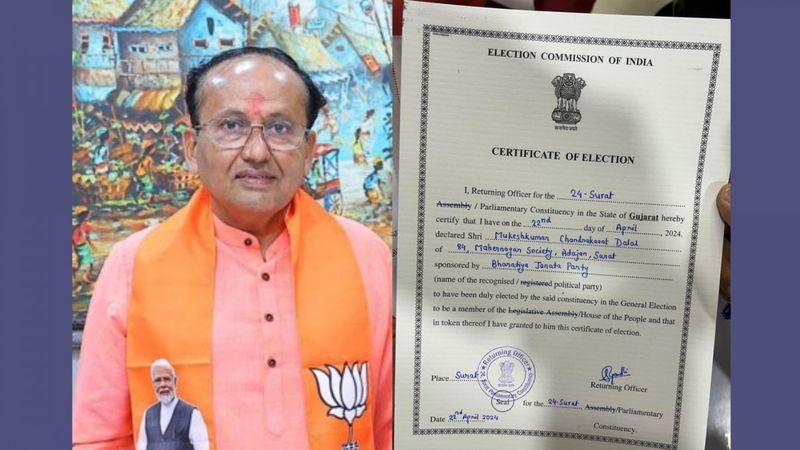 BJP's Mukesh Dalal was declared the winner without a single vote having to be polled, after all the other eight candidates in the fray withdrew.