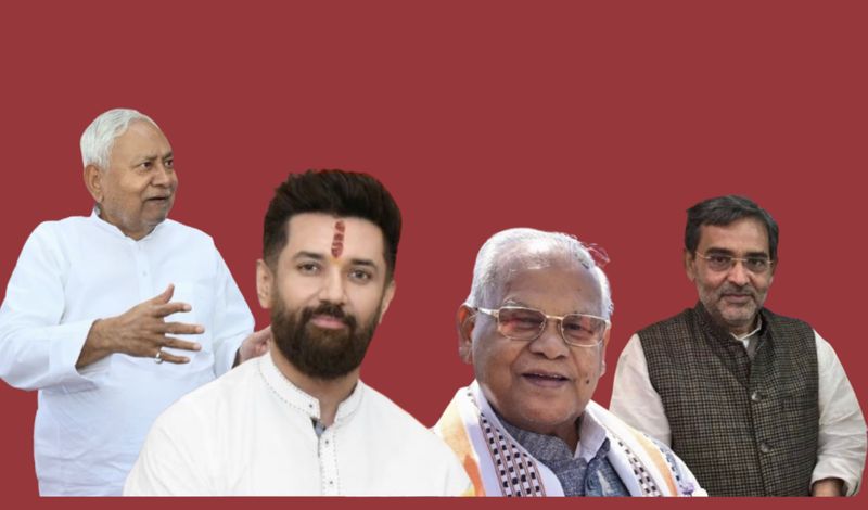 The seat sharing arrangement announced on Monday, placed the Bharatiya Janata Party (BJP) and the JD(U) on equal footing for the first time with both parties set to contest 101 seats each in the 243 Bihar assembly. Paswan's LJP (RV) will contest 29 seats, while Manjhi’s HAM and Kushwaha’s RLM will contest six seats each.