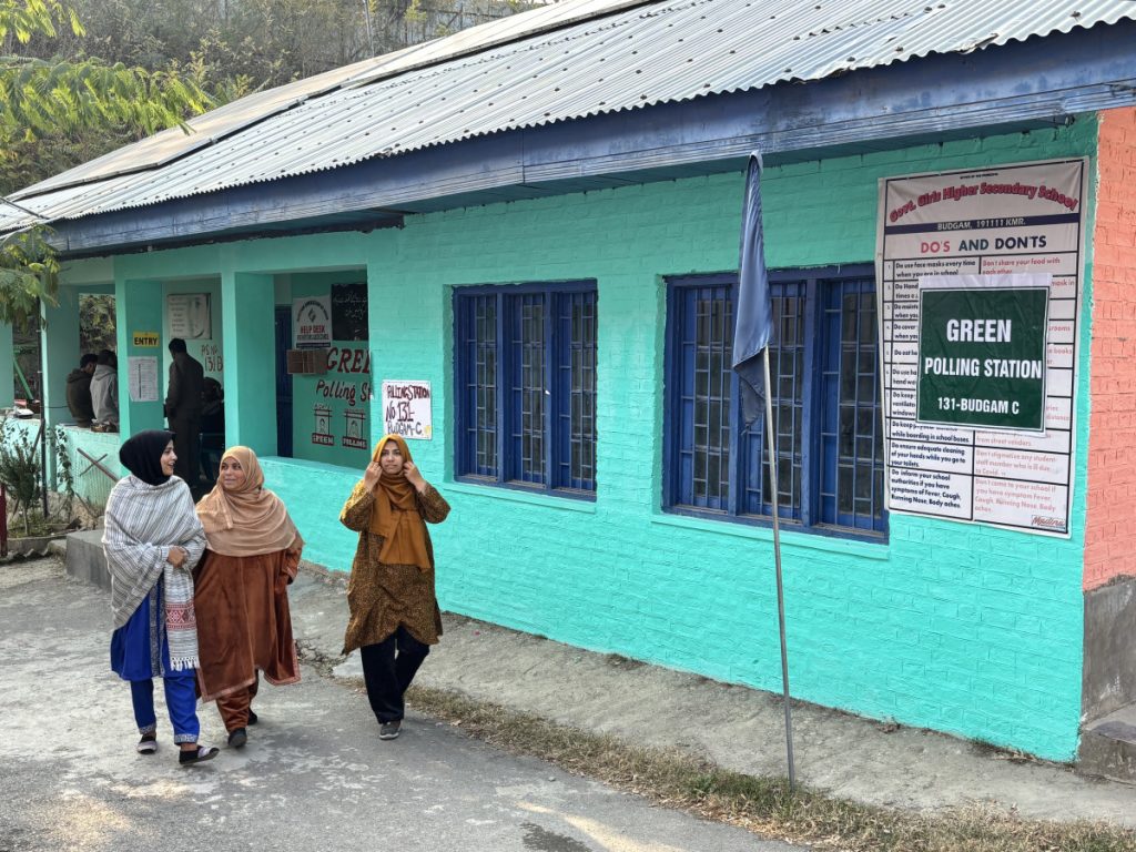 Women after voting at a “green” polling station in Budgam town on Tuesday, November 11, 2025. Photo: The Wire.