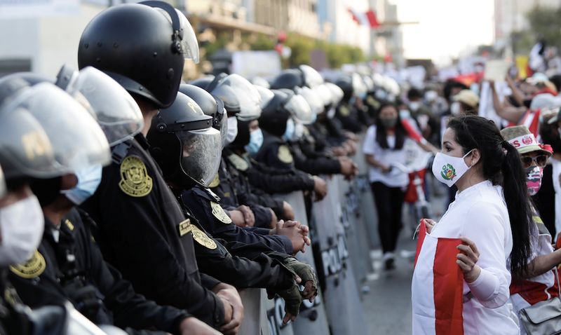 Thousands in Peru had staged some of the largest protests in decades, most of them peaceful but increasingly marred by clashes, since the vote to remove Vizcarra. A tense week collapsed into chaos late on Saturday, after mostly peaceful demonstrations grew more intense by nightfall.