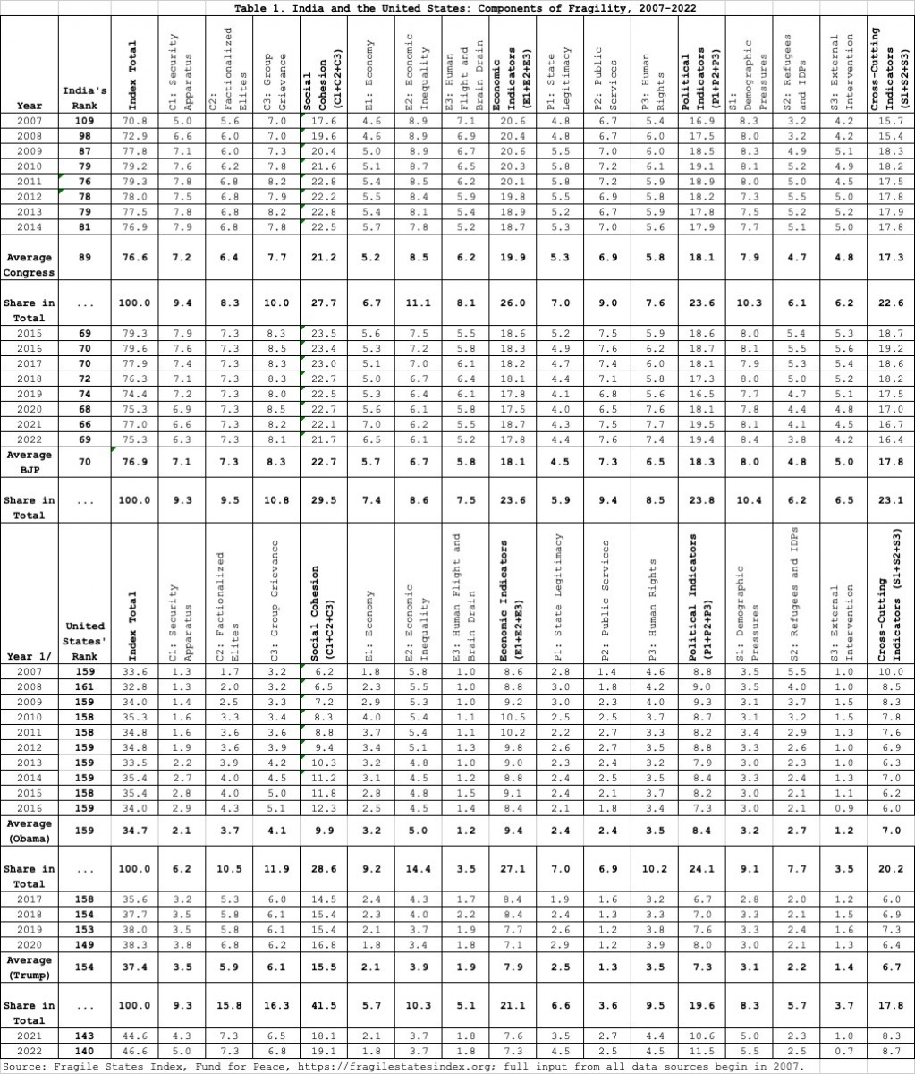 Recently, at the 77th session of the UN General Assembly in New York, India’s external affairs minister S. Jaishanker declared that India resolved to become a developed country in 25 years. While the objective is laudable, FSI data shows that overall fragility worsened precipitously by 40 ranks since 2007, 12 of them under Modi’s watch. We do not see how India can become a developed country by becoming more fragile.