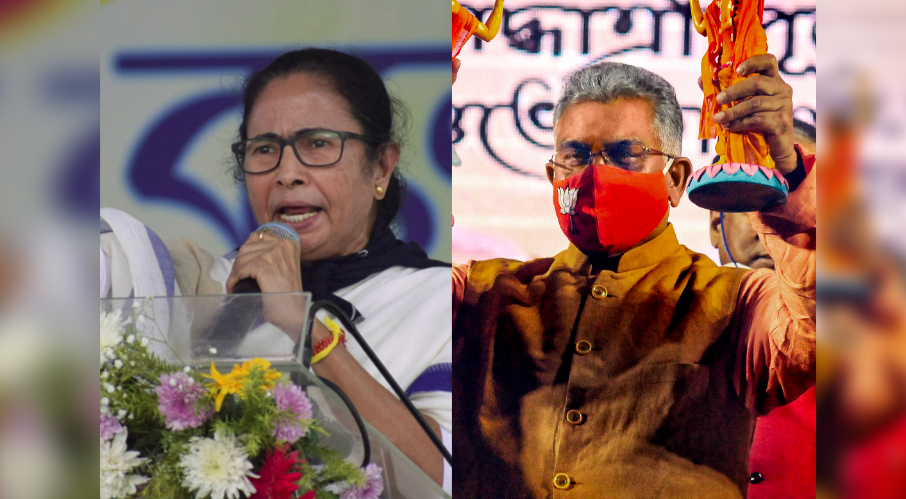 TMC's chief Mamata Banerjee and BJP's Bengal chief Dilip Ghosh. Photos: PTI