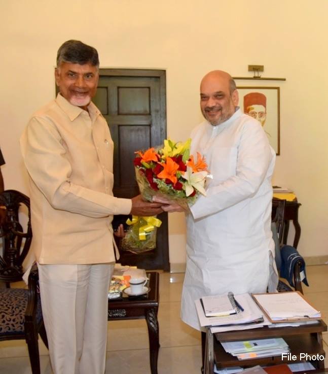 TDP chief N. Chandrababu Naidu with Amit Shah. Photo: Facebook/Amit Shah.