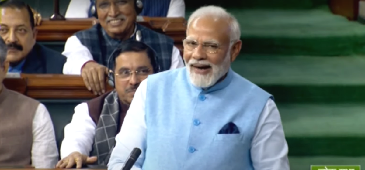 Prime Minister Narendra Modi in Lok Sabha on Wednesday, February 8, 2023. Photo: Screengrab via video/ Sansad TV.