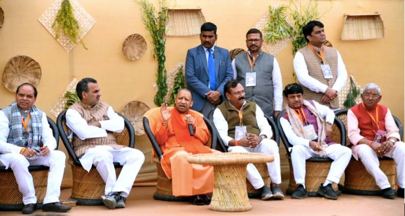 In the village of Firozpur Bangar in Muzaffarnagar, Uttar Pradesh Chief Minister Adityanath is seen engaging with villagers during a chaupal session, where he acquaints them with various beneficiary schemes initiated by the central and state governments. Additionally, the chief minister launches the BJP's Gram Parikrama Yatra in the state, slated to cover 50,000 villages across Uttar Pradesh. Following the chaupal, while addressing villagers in a rally, the chief minister says, “Farmers have always greeted each other with ‘Ram Ram,’ ‘Ram Ram Sa,’ or ‘Ram Ramji’. With the divine arrival of Lord Ram on one hand and the recognition of the farmer’s leader, Chaudhary Charan Singh, with the Bharat Ratna on the other, I urge our farmers to convey their felicitations to Prime Minister Modi.”