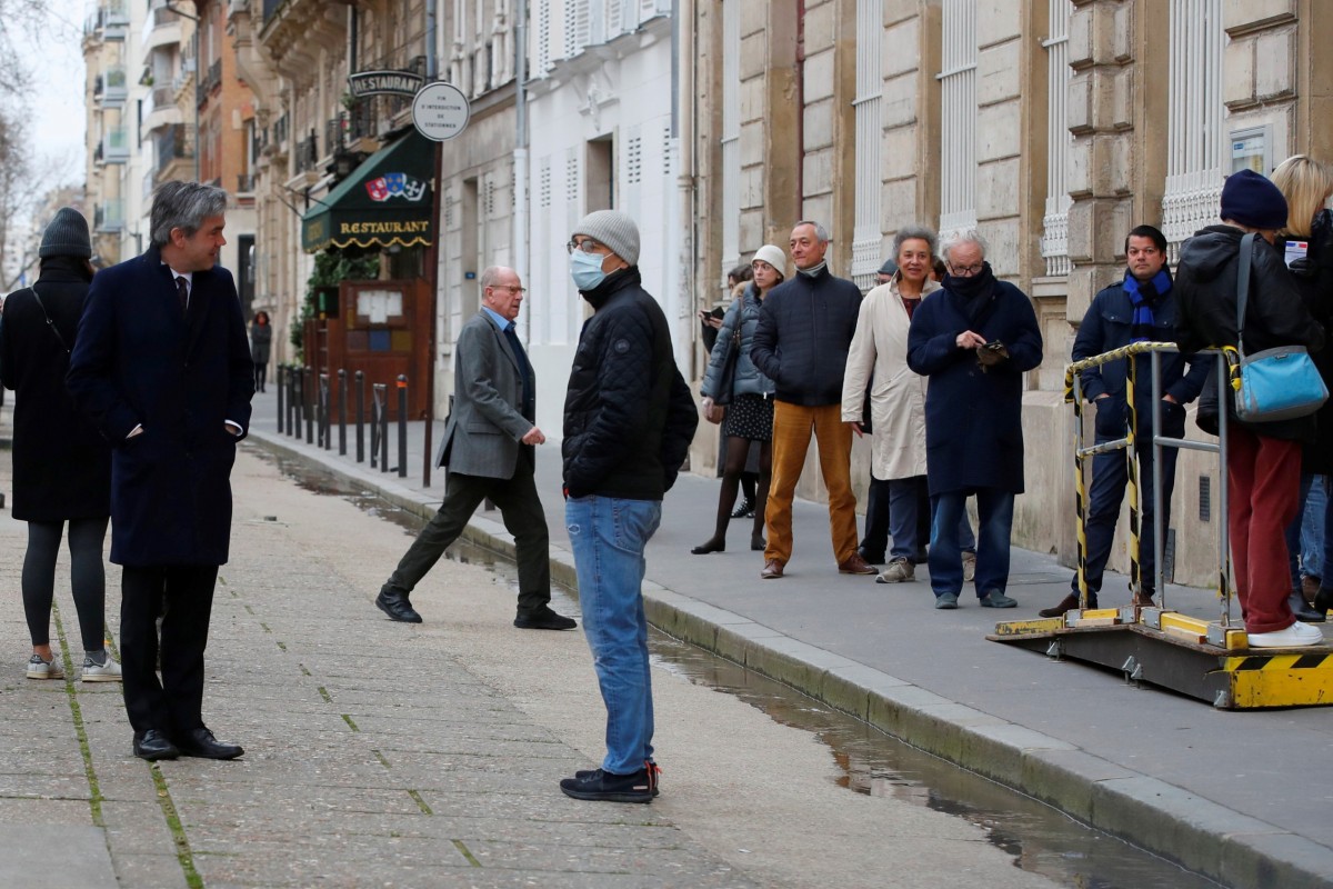 A man, wearing a protective mask, waits outside of a polling station before voting during the first round of mayoral elections in Paris as France grapples with an outbreak of COVID-19, March 15, 2020. Photo: Reuters/Gonzalo Fuentes