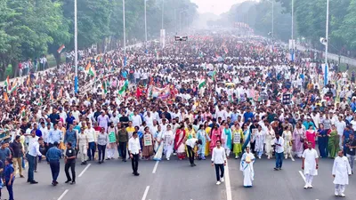 At the front row marched religious leaders from diverse faiths, instantly recognisable by their traditional attire – Sikh turbans, Buddhist maroon robes, Hindu saffron garments, Christian cassocks, and Muslim clerical robes. Walking hand in hand, they embodied interfaith harmony and solidarity, a visual motif that has become a hallmark of Banerjee's politics.