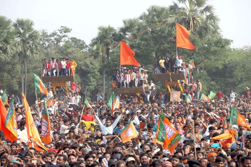 The bulldozers also featured in his rally in Rajmahal. But he did not refer to them in the rally. However, in a post made later on social media site X (formerly Twitter), Adityanath shared a picture of the rally in Rajmahal showing his supporters perched on three bulldozers. Two of the bulldozers had supporters holding large saffron flags (shaped as stacked triangles).