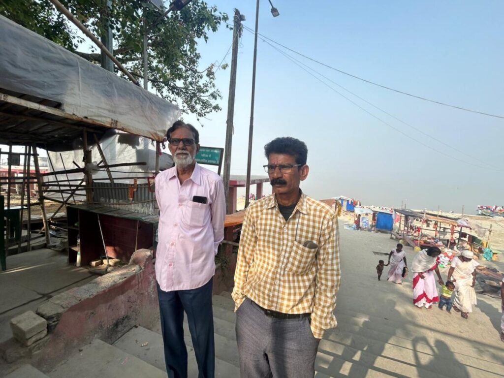 Vinod Kumar Verma (left), standing on the banks of the Ganga in Rajmahal, wondered why the BJP did not raise the ‘infiltration’ issue all this while if it was so invested in it. Photo: Sravasti Dasgupta.