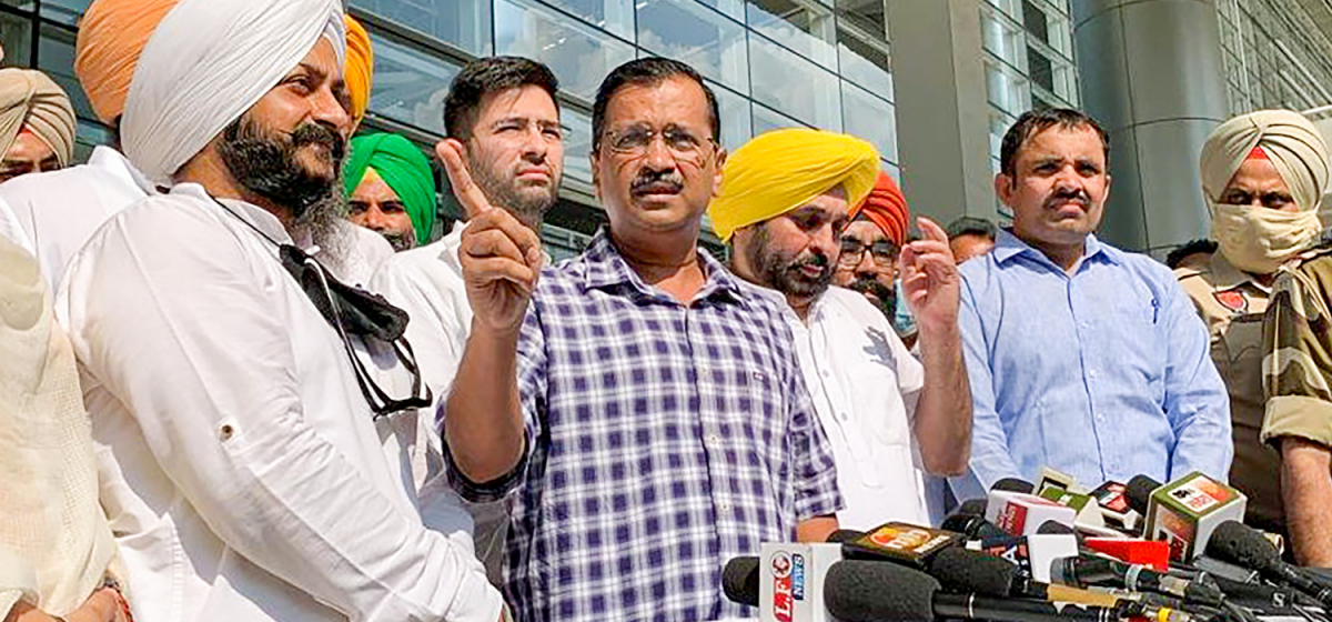 AAP National Convenor and Delhi Chief Minister Arvind Kejriwal addresses media at Chandigarh Airport. Photo: PTI.