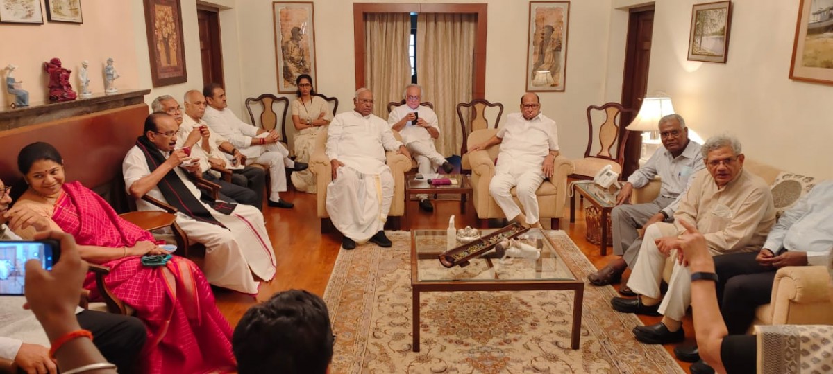Leaders of opposition parties meet at Sharad Pawar residence to finalise vice-presidential candidate on July 18, 2022. Photo: Twitter.