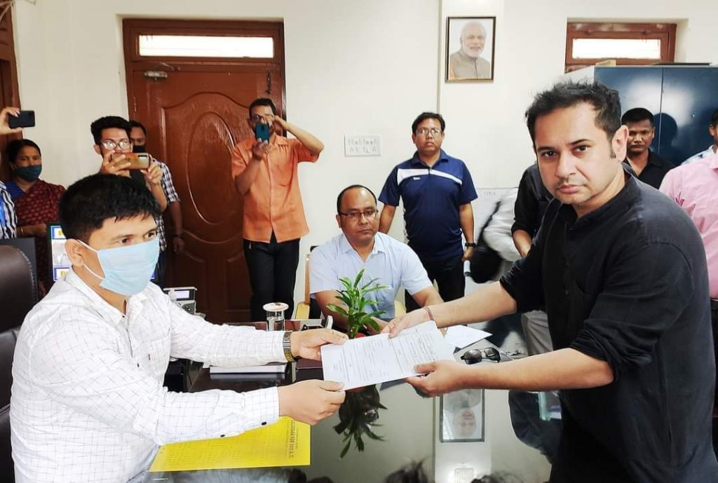 TIPRA chairman Pradyot Kishore Manikya Debbarma files his nomination papers for Tripura district council polls. Photo: By arrangement