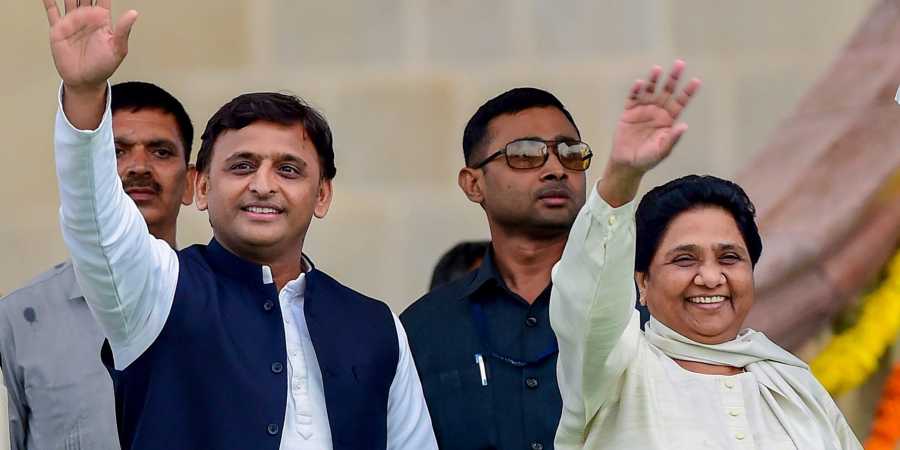 Former Uttar Pradesh CM Akhilesh Yadav with BSP chief Mayawati. Credit: PTI