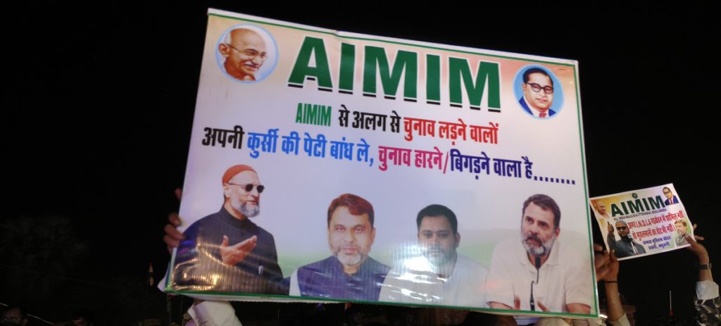 A poster reads: ‘Those fighting the election separately from the AIMIM, fasten your seat belts, the election is about to be lost/spoiled’.