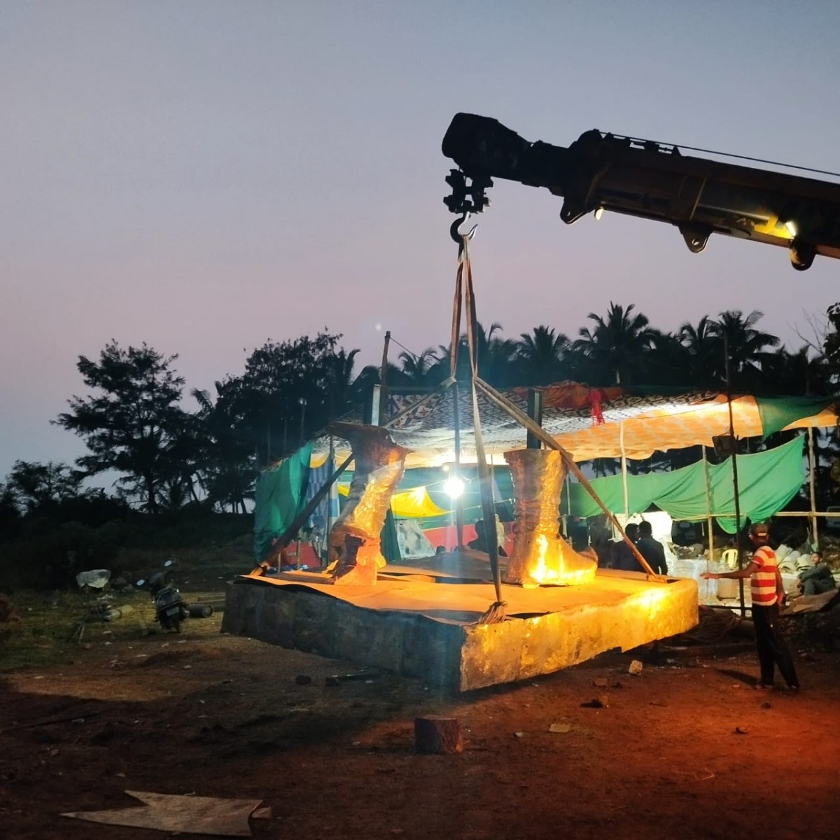 Installing the statue at Rajkot, Malvan, November 2023. Photo: Jaideep Apte