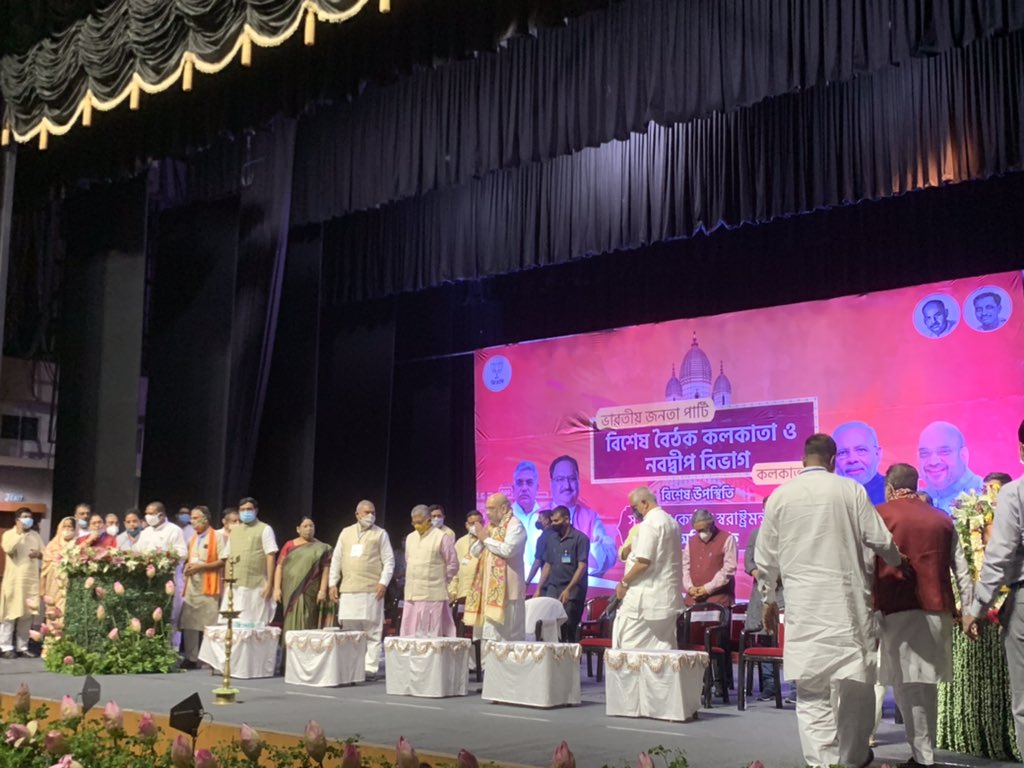 BJP leaders at a Karyakarta Baithak with Amit Shah at Kolkata. Photo: Twitter/@DilipGhoshBJP